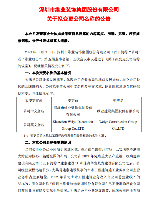 維業(yè)股份:關(guān)于公司擬變更名稱的公告