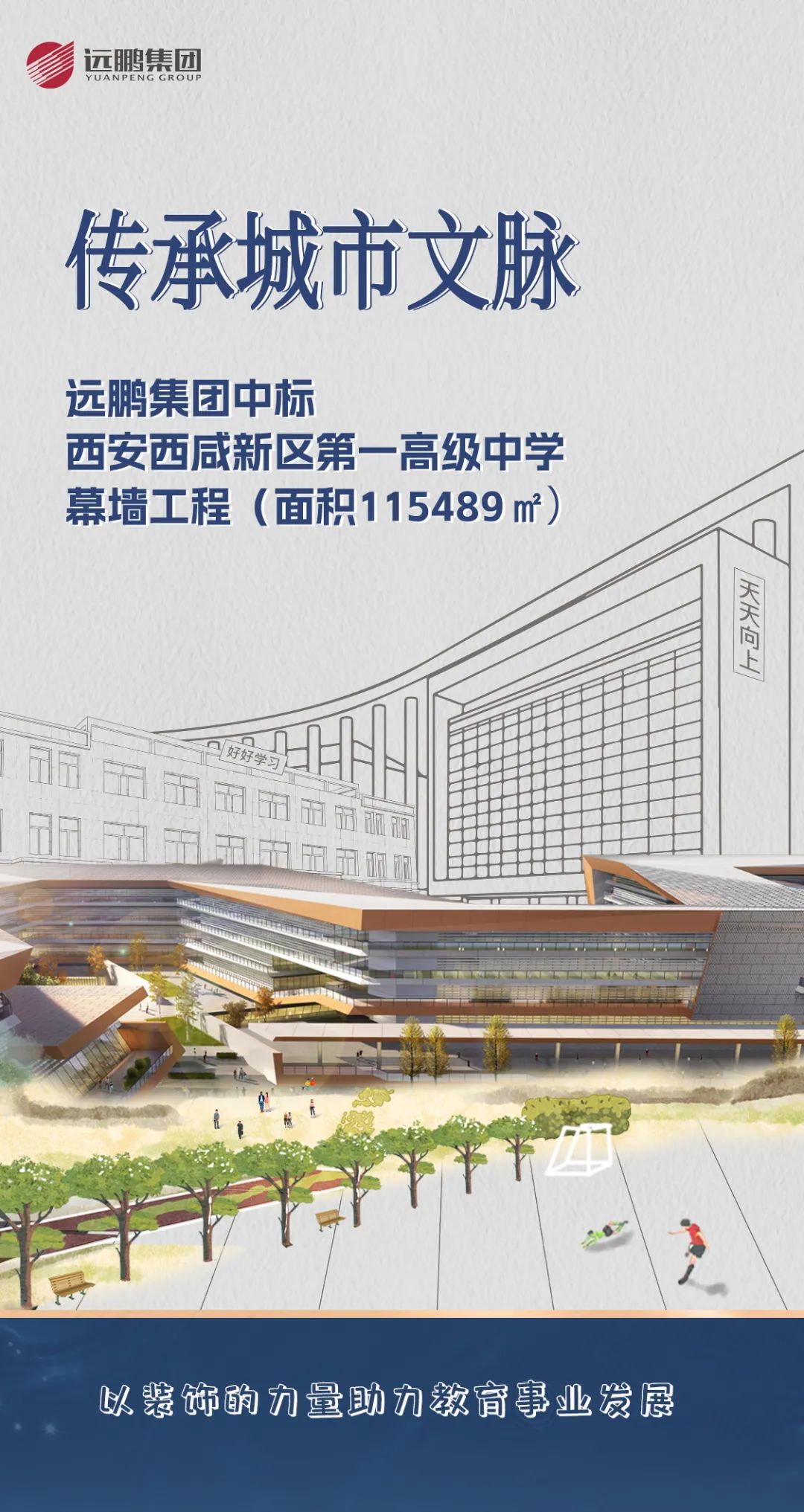 近期,遠(yuǎn)鵬集團(tuán)中標(biāo)西安西咸新區(qū)第一高級中學(xué)幕墻工程(面積115489㎡)。