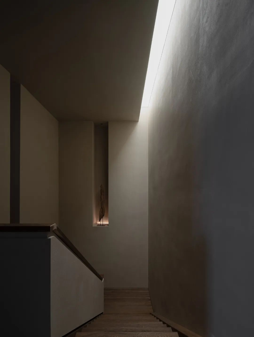 空間有時更像一座橋梁,建立起環境與人文的密切聯系。半入的微光將空間純粹化,此時的浮躁與喧囂好似無處遁形,與深邃而神秘的陰影相輔相成,構成凝練的幾何形式感。